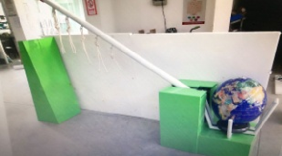 1.觀眾拉動(dòng)杠桿設(shè)施上不同位置的拉環(huán),啟動(dòng)杠桿,撬動(dòng)杠桿另一端的地球模型;