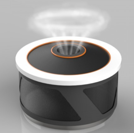 根據伯努利原理——流動的流體壓強降低,周邊壓強高的靜止空氣補充到壓強低的區域,由此形成渦流。這個渦流分布在圓孔周邊,成為環狀,并向前運動。環狀的空氣渦流將霧氣水珠限制在一個環狀區域內形成煙圈,當霧氣水珠隨著空氣快速通過一個圓孔時,由于圓孔出口周邊的空氣是靜止的,因此從圓孔中流出的空氣-水珠霧氣混合物會牽引靜止的周邊空氣,由此形成了一個從孔洞邊緣向外再轉向內旋轉的一個渦流。