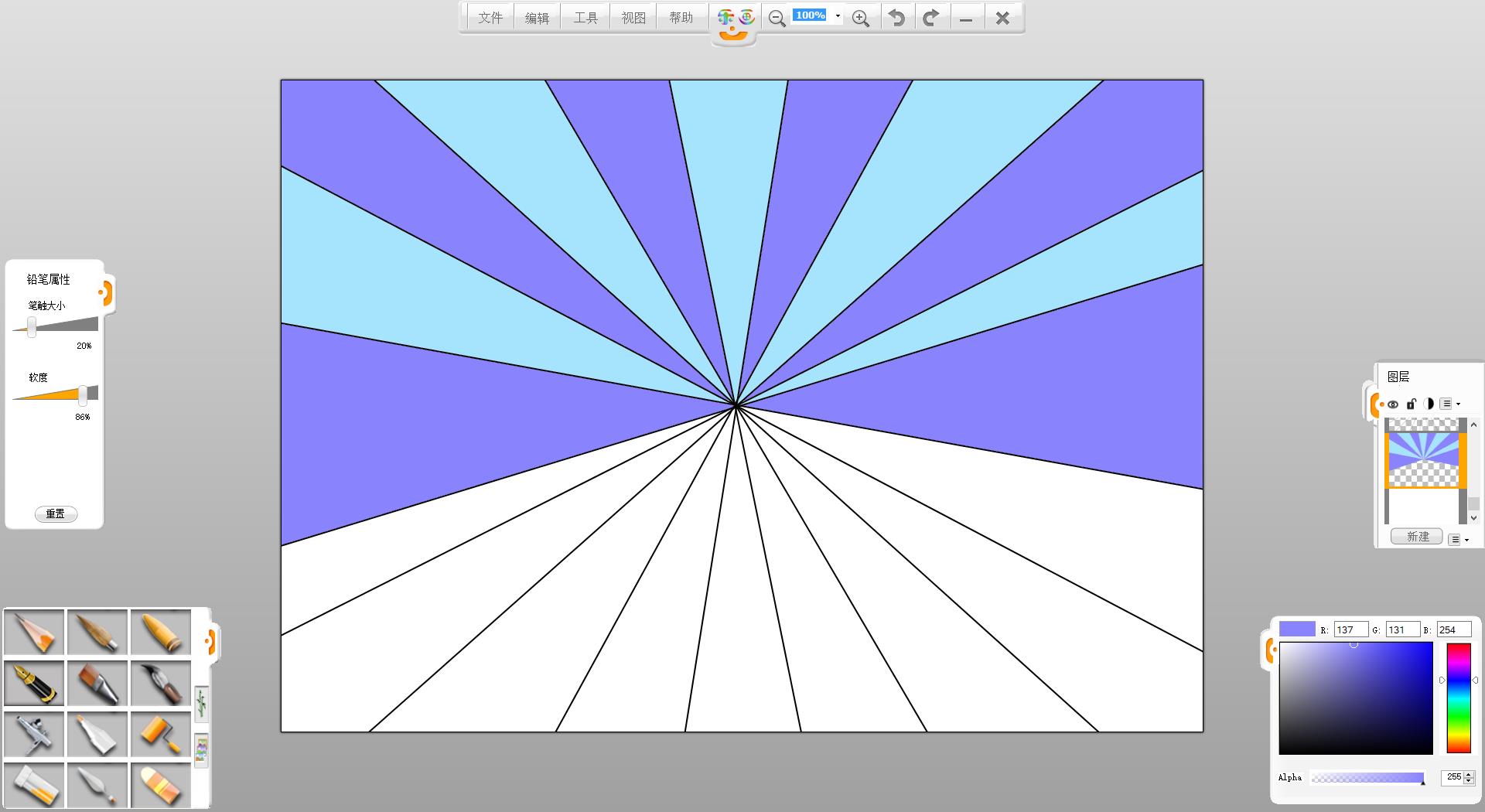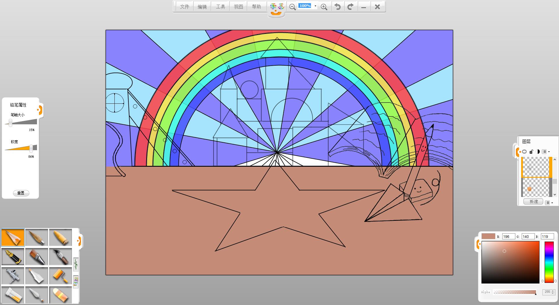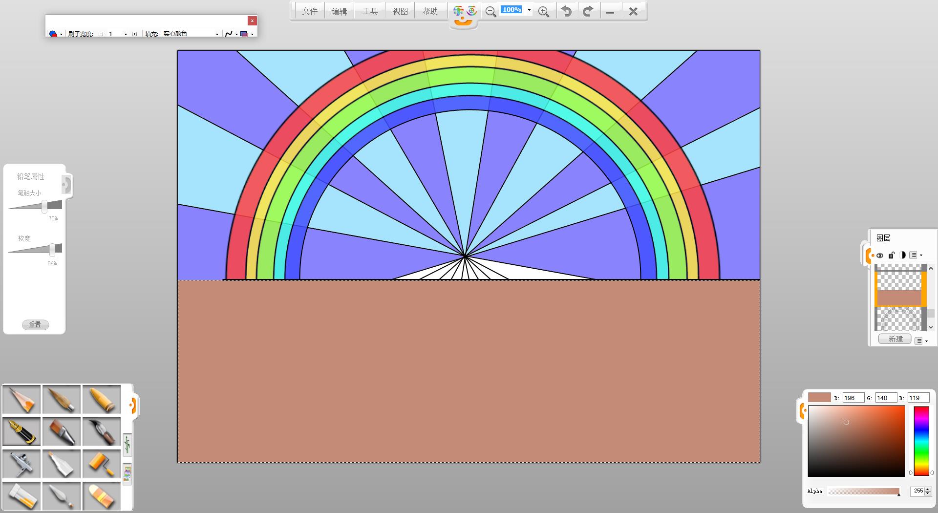 14.使用魔術(shù)棒工具選區(qū)后,使用油漆桶工具上色,繪制出彩虹。