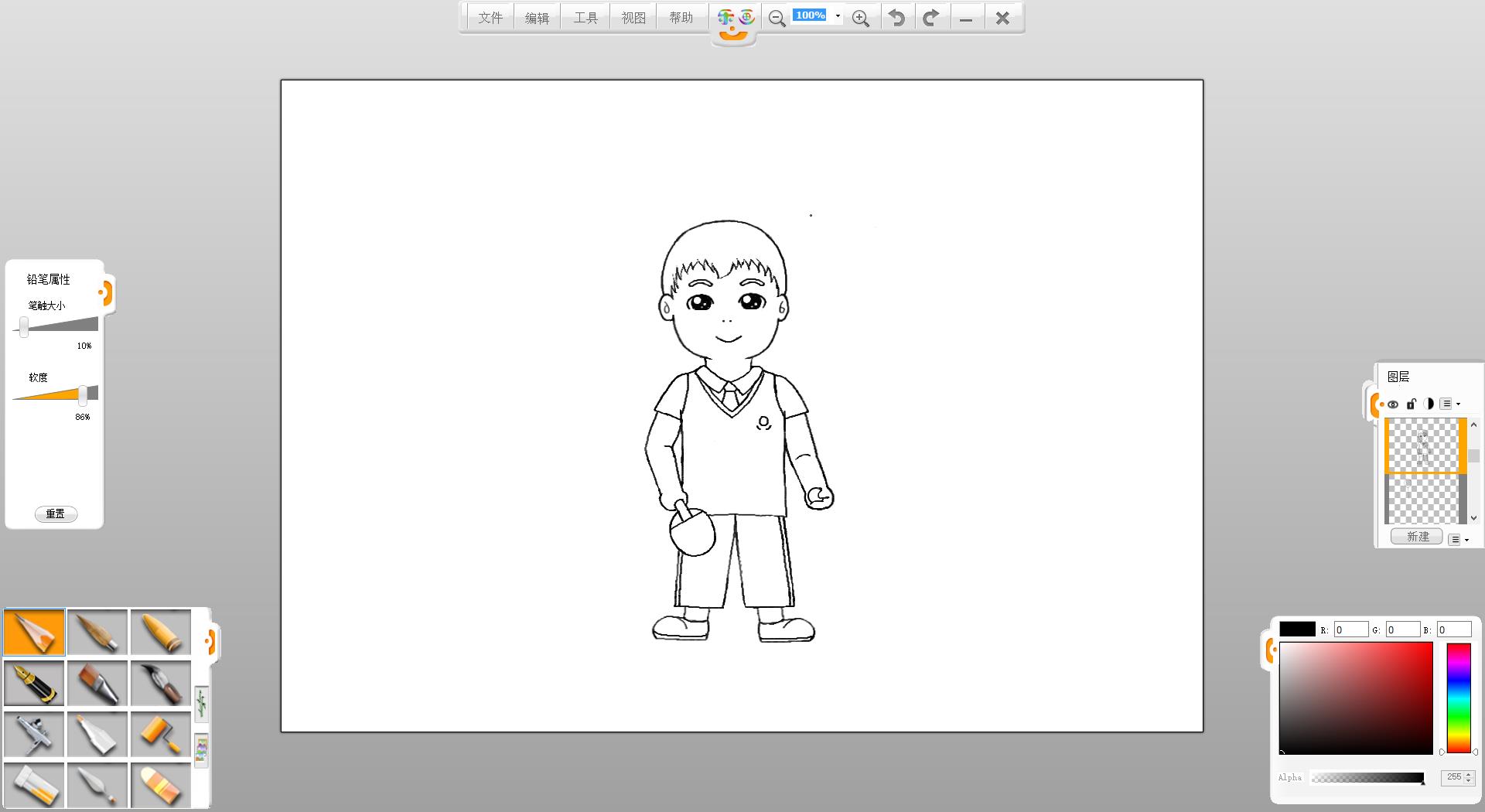 6.使用顯示/隱藏圖層按鈕,將先畫好的男孩隱藏后,新建圖層;在畫面中間偏左的位置繪制一個(gè)拿著禮物的小男孩形象。