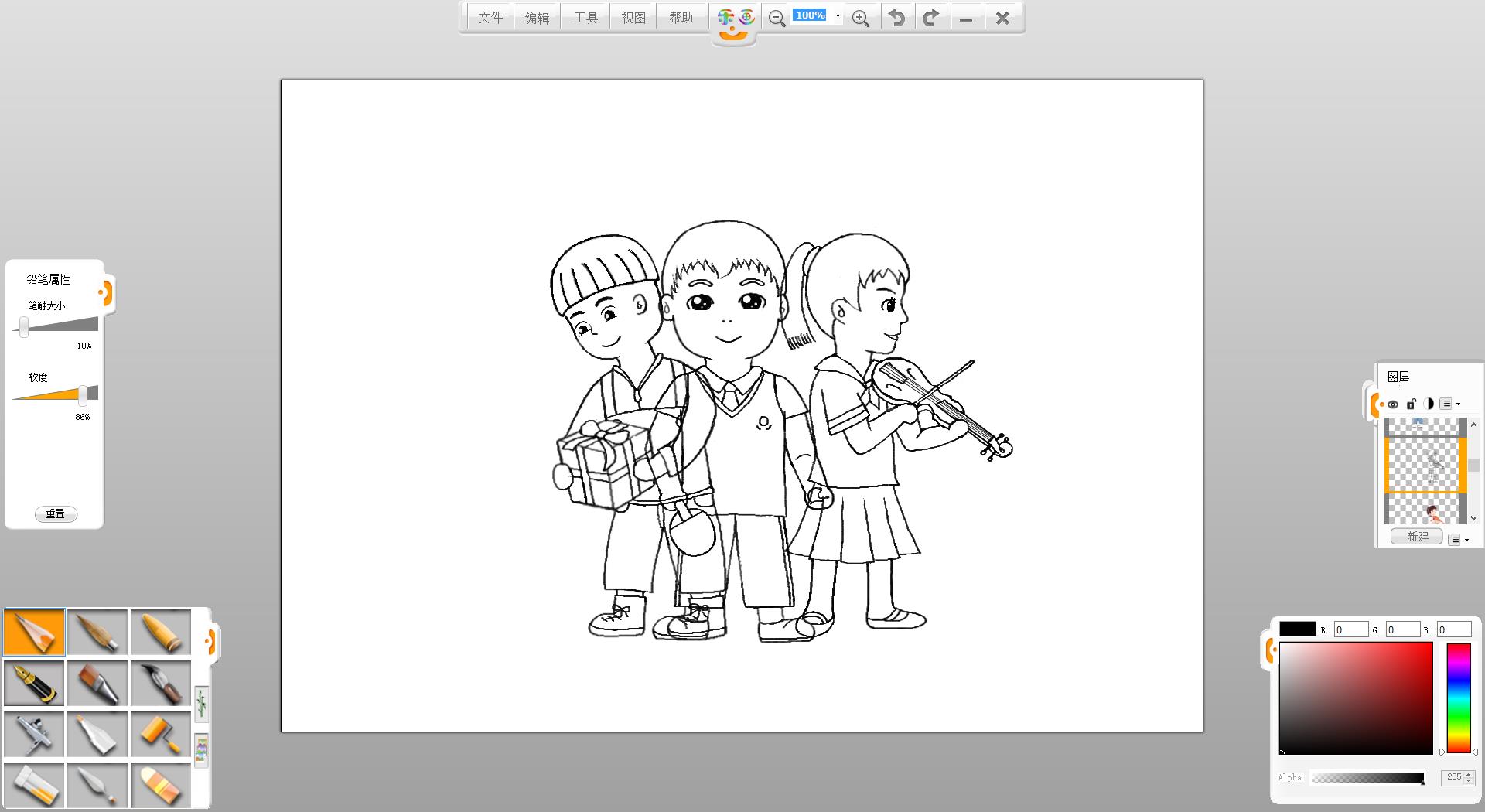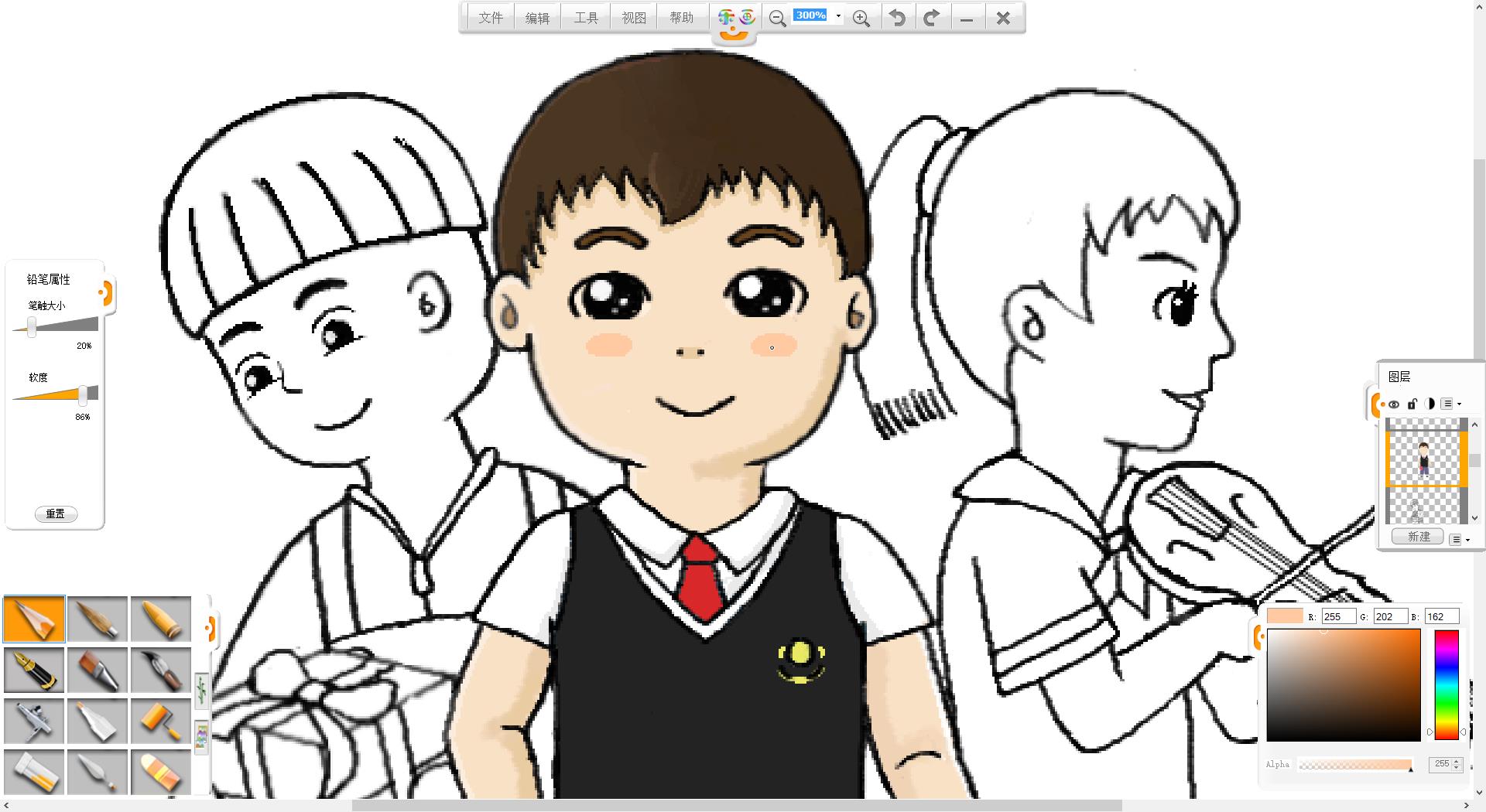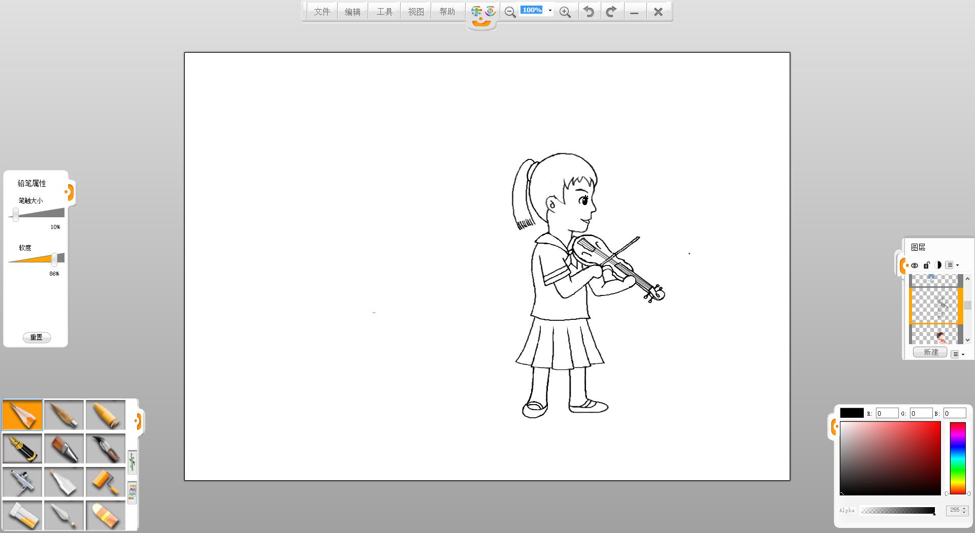 7.使用相同的方法在畫面中間偏右的位置繪制一個(gè)拉小提琴的小女孩形象。