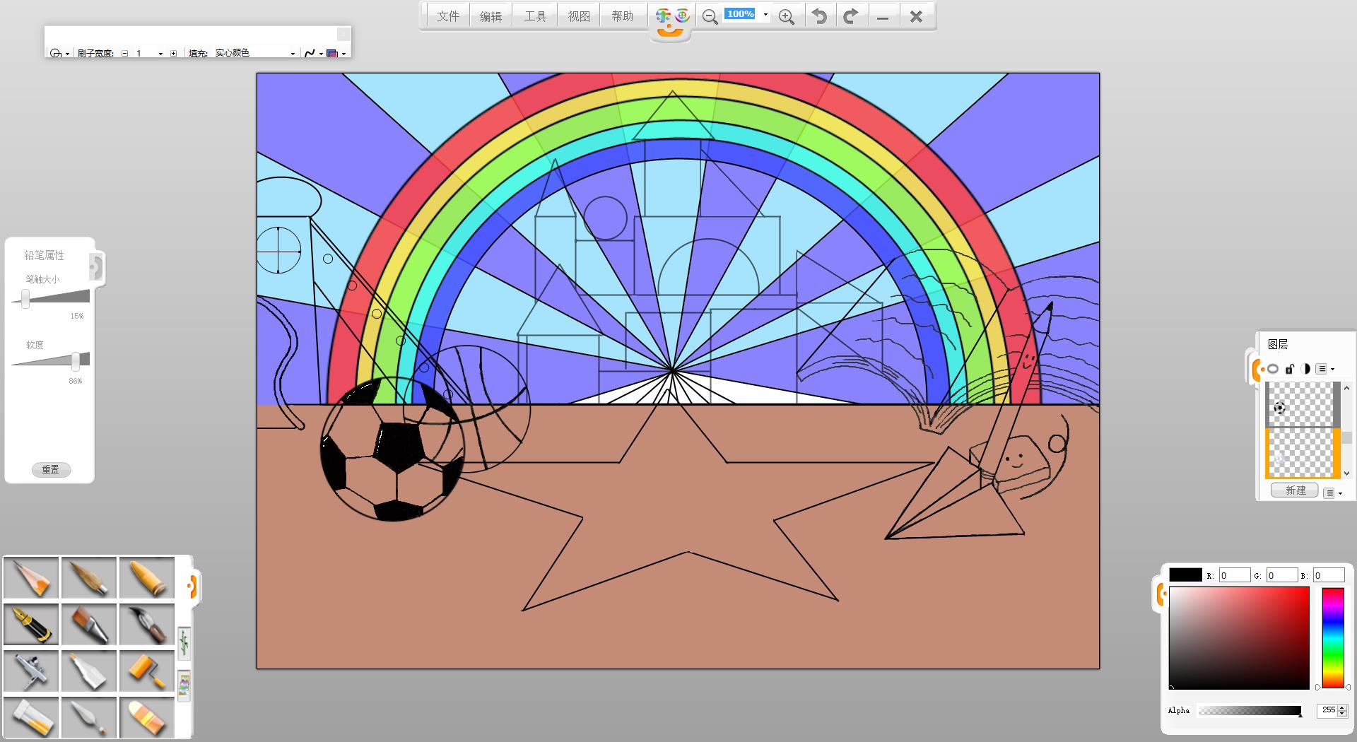 19.再用鉛筆筆觸和工具菜單下的橢圓工具繪制一個(gè)足球和一個(gè)籃球。
