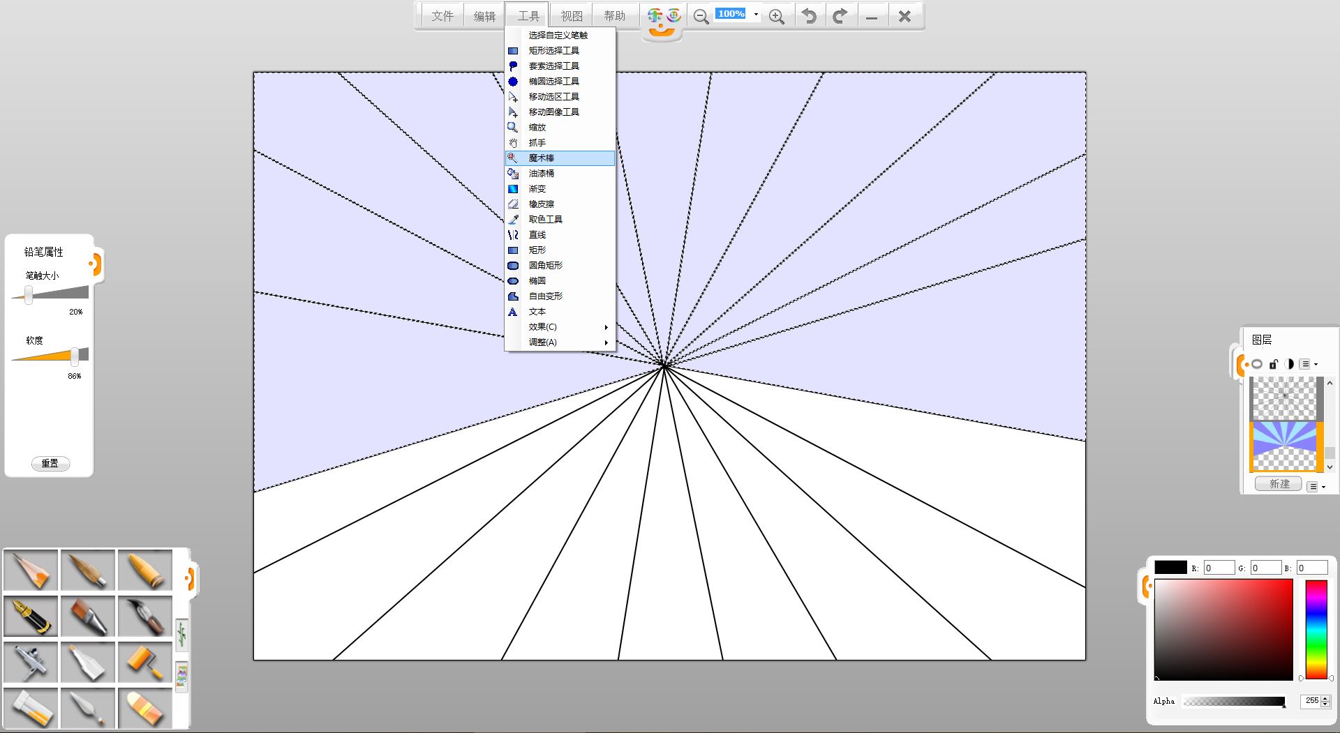 17.使用鉛筆筆觸和工具菜單下的直線工具,繪制一個(gè)滑梯。