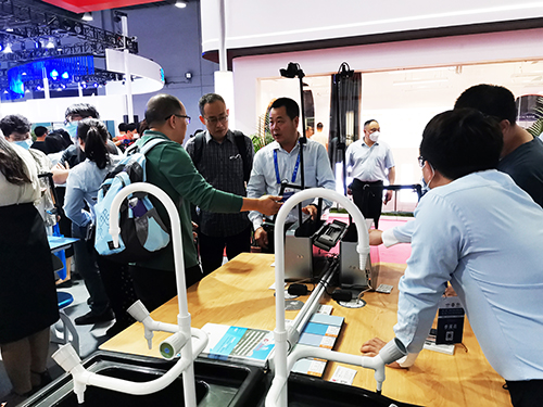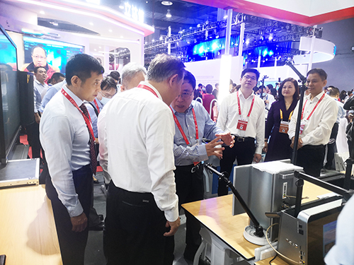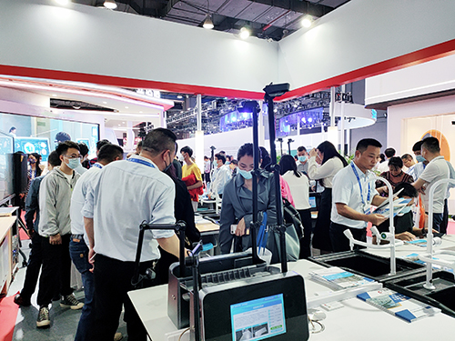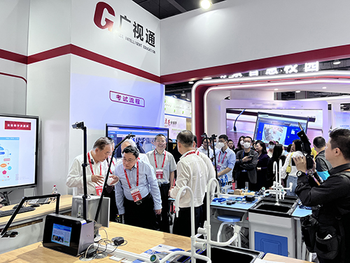 廣視通向現(xiàn)場嘉賓展示了創(chuàng)新智能理化生實驗室、中考實驗教學(xué)與操作考評系統(tǒng)、智慧書法教室等產(chǎn)品,引起廣泛關(guān)注,吸引了現(xiàn)場領(lǐng)導(dǎo)和嘉賓駐足體驗,并給予高度評價。