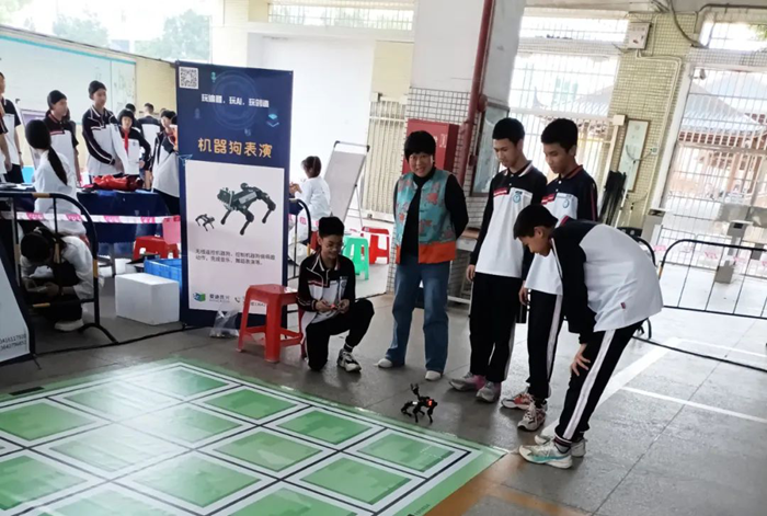 學(xué)生們操控機(jī)械狗,使其前進(jìn)、握手、拾取物品,學(xué)生們?cè)谶@過程中,不僅享受到了科技帶來的樂趣,還鍛煉了動(dòng)手能力和空間感知能力。