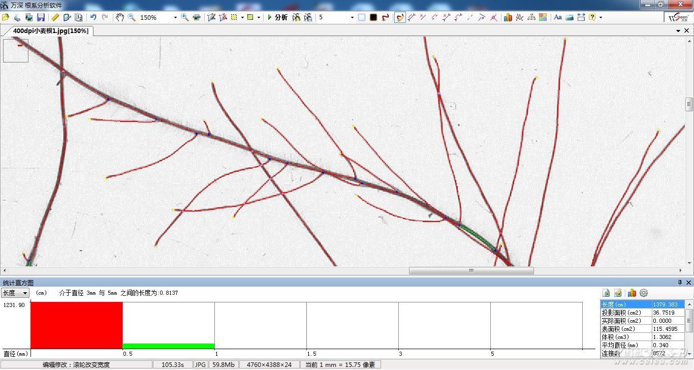 產(chǎn)品詳細(xì)介紹一、用途 用于對洗凈后的根系圖像進(jìn)行多參數(shù)、批量化的自動分析。 二、主要性能指標(biāo) 1、配光學(xué)分辨率4800×9600、A4幅面雙光源彩色掃描儀,最小像素尺寸0.005mm×0.0026 mm。 2、可分析測量: (1)根總長; (2)根平均直徑; (3)根總面積; (4)根總體積; (5)根尖計數(shù); (6)分叉計數(shù); (7)交疊計數(shù); (8)根直徑等級分布參數(shù); (9)根尖段長分布; (10)可不等間距地自定義分段直徑,自動測量各直徑段長度、投影面積、表面積、體積 等,及其分布參數(shù)。 (11)能進(jìn)行根系的顏色分析,確定出根系存活數(shù)量,輸出不同顏色根系的直徑、長度、投影面積、表面積、體積。 (12)能進(jìn)行根系的拓?fù)浞治觯詣哟_定根的連接數(shù)、關(guān)系角等,還能單獨(dú)地自動分析主根或任意一支側(cè)根的長度和分叉數(shù)等,可單獨(dú)顯示標(biāo)記根系的任意直徑段相應(yīng)各參數(shù)(分檔數(shù)、檔直徑范圍任意可改,可不等間距地自定義),并能進(jìn)行根的分叉裁剪、合并、連接等修正,修正操作能回退,以獲得100%正確的結(jié)果。 (13)能用盒維數(shù)法自動測根系分形維數(shù)。可分析根瘤菌體積在根系中的占比,以客觀確定根瘤菌體貢獻(xiàn)量。 (14)大批量的全自動根系分析,對各分析結(jié)果圖可編輯修正。 (15)能做根系生物量分布的大批量自動化估算。 (16)具有向地角分析、路徑分析、主根提取分析特性。 (17)能自動測量油菜、大豆等果莢的果柄、果身、果喙部分的粗細(xì)、長、弧長、弦高等參數(shù)。 (18)能自動測量各種粒的芒長。 (19)能測各類針葉的葉面積、長度、粗細(xì)。 (20)各分析圖像、分布圖、結(jié)果數(shù)據(jù)可保存,并輸出至Excel表,可輸出分析標(biāo)記圖。 (21)儀器有云平臺支持,可將分析數(shù)據(jù)保存到云端隨時隨地查看。 三、標(biāo)準(zhǔn)配置 1、LA-S植物根系分析儀系統(tǒng)軟件U盤及軟件鎖1套 2、光學(xué)分辨率4800×9600、A4幅面雙光源彩色掃描儀1臺 3、根系成像盤3個 四、其他 本產(chǎn)品需使用電腦,推薦選配:品牌電腦(12代以上酷睿i5 CPU / 16G內(nèi)存/ 512GB以上硬盤/23.5”彩顯/無線網(wǎng)卡,1個USB3.0+3個USB2.0口,運(yùn)行環(huán)境Windows 10或11完整專業(yè)版)。 |