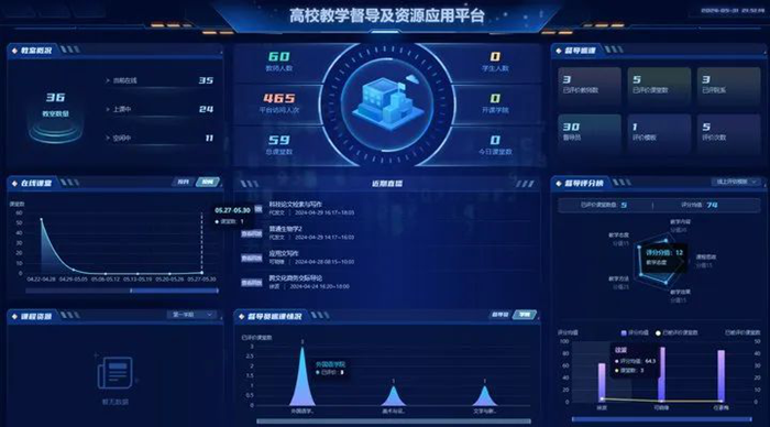 樂山師范學院攜手奧威亞打造27間AI錄播教室與信息化平臺,將人工智能技術融入到日常督導、教學工作中。學校管理者無需親臨現場,即可任意調取AI錄播教室進行巡回查課、隨機聽課和觀看公開課;此外,平臺支持多模態的數據分析,可視化呈現教情、學情數據,便于管理者洞察數據關系,為優化教育管理提供數據支撐。