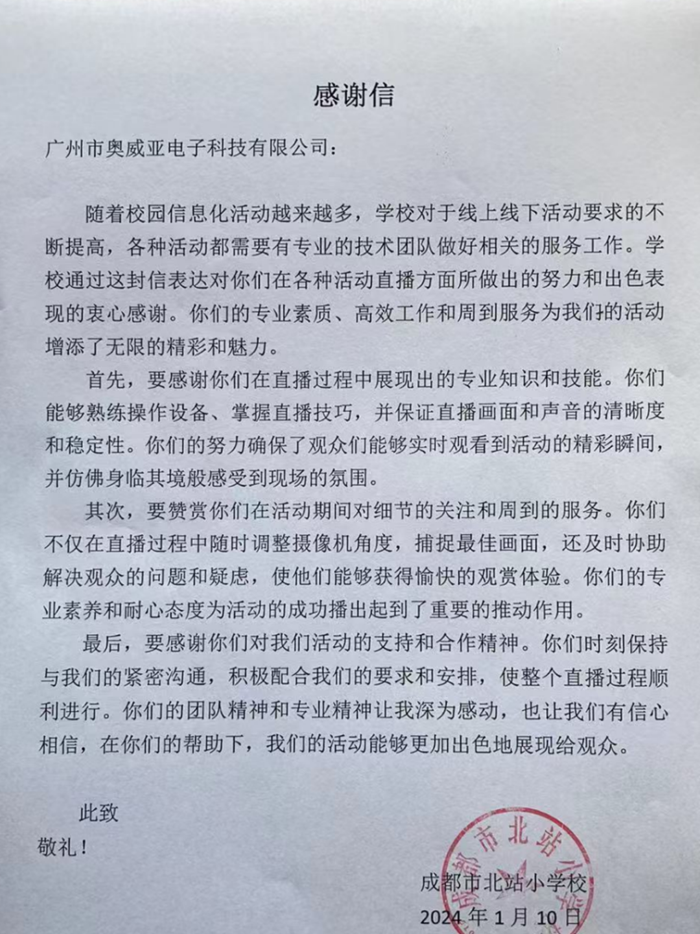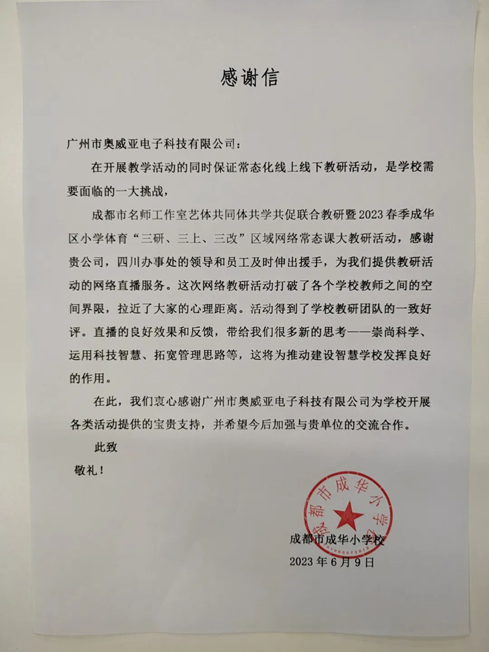 在四川,奧威亞的服務足跡已經遍布17個市州,橫跨東西1300公里。隨著項目的不斷落地,我們也收到了多所學校的高度肯定!