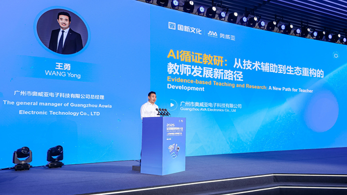 論壇上,國新文化董事、奧威亞總經(jīng)理王勇發(fā)表《AI循證教研:從技術(shù)輔助到生態(tài)重構(gòu)的教師發(fā)展新路徑》主題報告。系統(tǒng)闡述了奧威亞以多模態(tài)循證教研體系賦能全周期教師發(fā)展,推動教研從“經(jīng)驗驅(qū)動”向“數(shù)據(jù)驅(qū)動”,為教師應(yīng)對智能時代的新挑戰(zhàn)提供實踐路徑。