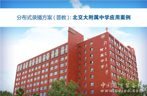 北京交通大學附屬中學采用AVA單個學校分布式錄播方案,完成66間錄播課室的建設后,將校內優秀教師的優質課程錄制下來,并進行有效整合和統一控制,實現校內錄播課室的有序管理,促進南北兩個校區之間的教研互動,推動了學校優質課程資源庫的建立。