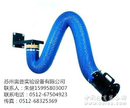 并懸停在理想位置狀態進行煙塵的吸收,不需任何輔助支承設施。 (3)吸氣罩口可以隨吸氣臂360度旋轉,使用更加的方便靈活。無論操作者位于吸氣臂的任何方位,都能將吸氣罩放置到最佳的吸收位置。 (4)柔性吸氣臂與固定式管路系統比較,柔性吸氣臂具有無可比擬的性能優勢,能適應各類無法安裝吸氣管路的復雜工況。