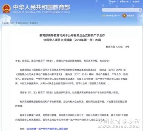 近日,教育部高等教育司公布2018年第一批產(chǎn)學(xué)合作協(xié)同育人項(xiàng)目企業(yè)名錄,廣州視睿電子科技有限公司(希沃)成功入選。