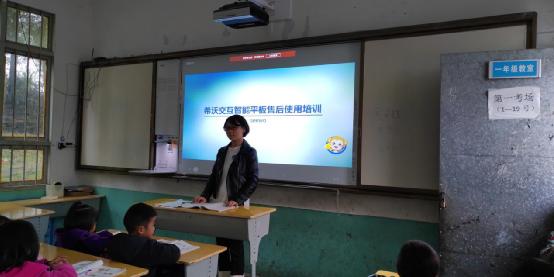 午飯后是孩子們的“午休”時間,這也是他們難得的休閑時光。我到教室里看看孩子們平時都有什么娛樂活動,恰好看到了兩個在下象棋的小女孩,引起了我的好奇心。我問她們是誰教她們下象棋的,她們說是看別人下棋就學會了,我很驚訝,她們的自學能力這么強。如果有更好的教學資源和學習平臺,相信她們可以拓寬視野、掌握更多知識,于是我指著希沃一體機告訴她們,這塊大平板上有很多像學習象棋之類的教學資料,以后就可以學習到更多東西。其他小朋友們也很欣喜的問我,“真的嗎?可以學習唱歌嗎?”,“可以學習跳繩嗎?”,“可以學習修房子嗎?”,你一句、我一句的,我一時不知道如何回答,只應和他們“當然可以,當然可以”,看著他們天真的模樣,內心百感交集,深深的覺得城鄉教育資源差別如此之大,或許,我們希沃公益行的意義,就在于此吧。