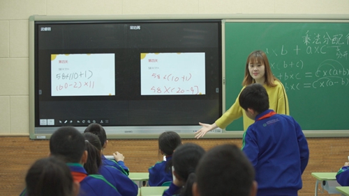 在內(nèi)容上,她強調(diào)要與學生終端爭寵,回歸數(shù)學的本質(zhì)。其基于希沃易課堂的翻轉(zhuǎn)課堂的實際使用場景,以《乘法分配律復(fù)習課》的視頻為例,講解了如何讓技術(shù)輔助快速收集數(shù)據(jù),達成精準化學習并讓技術(shù)為提升思維而服務(wù),實現(xiàn)從形式的熱鬧到思維的熱鬧。