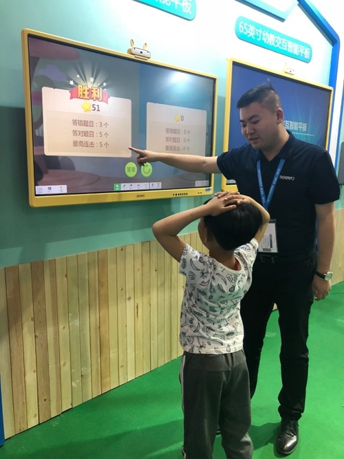 此次希沃與康普達(dá)聯(lián)合打造的兒童未來(lái)4D教室也頗為吸睛,許多小朋友體驗(yàn)后不肯離開(kāi)希沃展位,也引得現(xiàn)場(chǎng)不少“老小孩”大玩“變臉”等體驗(yàn)互動(dòng)體感益智游戲。
