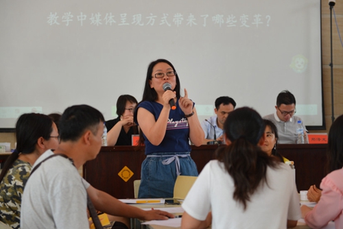 最后,在兩個學科專題的研討會上,來自云南師范大學的朱教授也參與到研討中來,每個小組都積極闡述自己的觀點并提出問題,與名師專家進行了充分交流。當下應該由扎營者向攀登者進發,而在課堂當中, “生成“部分,才是教育教學與信息化融合的關鍵所在。
