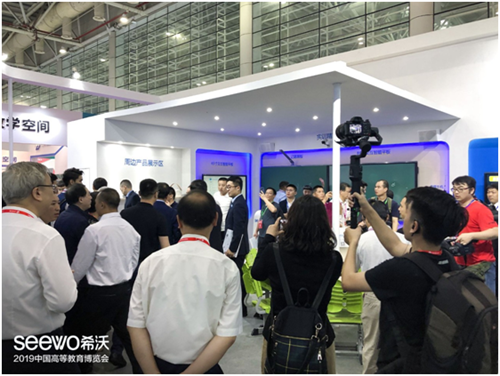 在人流量較大的信息化及智慧教育展區(qū),希沃(seewo)及其在本次展會上展示的“高校教育信息化綜合解決方案”,成為了觀展人士的必去“打卡地”,讓眾人眼前一亮。