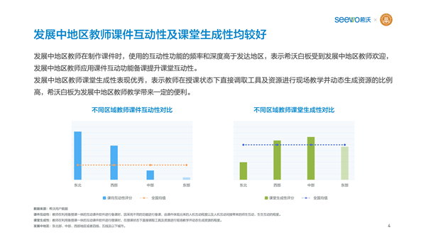 通過(guò)分析教學(xué)行為區(qū)域差異,發(fā)現(xiàn):在發(fā)展中地區(qū),希沃提供的系列軟硬件正在提升教師信息化教學(xué)水平,助力國(guó)家教育均衡發(fā)展。