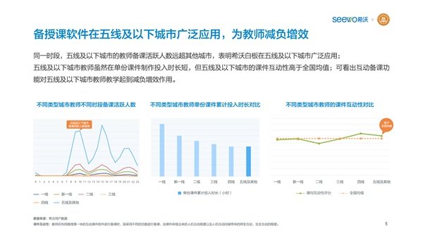目前,希沃已覆蓋120萬(wàn)+教室,教師用戶280萬(wàn)+。在大量數(shù)據(jù)統(tǒng)計(jì)分析基礎(chǔ)上,希沃聯(lián)合教育均衡化發(fā)展聯(lián)盟對(duì)K12教師典型信息化教學(xué)行為(備課授課、教學(xué)管理、在線學(xué)習(xí))進(jìn)行區(qū)域、學(xué)科學(xué)段及時(shí)間規(guī)律上的分析。