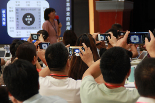 上課時學生回答不積極?現場演示的班級優化大師很好地解答了老師們的困惑。其評分、搶答、抽選、倒計時等強大的功能,幫助老師發現孩子的閃光點,從而更好地把控課堂氛圍與紀律。期末針對學生學期表現進行多維分析從而自動生成學期評語的功能,也讓現場的學校管理者及骨干教師如獲至寶。