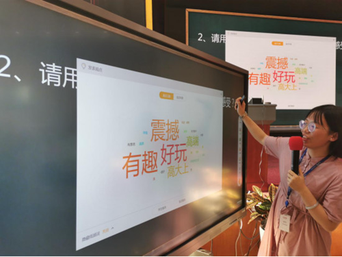 隨后希沃教師顧問張一鳴系統介紹了希沃教育信息化應用工具,希沃教務事業部總經理郭瀟深入淺出、生動形象地講解了目前百萬教師都在使用的備授課工具希沃白板,并進行了課堂活動演示,將練習與游戲相融合,使傳統手段難以實現的效果,通過希沃白板輕松達成。