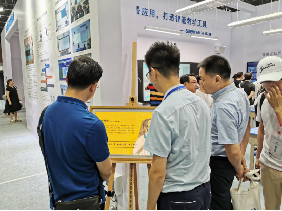 希沃畫屏用畫框的外觀設(shè)計(jì)風(fēng)格,畫質(zhì)清晰、設(shè)計(jì)精美,產(chǎn)品充滿藝術(shù)氣息,襯托出學(xué)校的文化氛圍。對(duì)于畫屏的“高顏值”、“高性能”,觀展人士一致表示認(rèn)可。