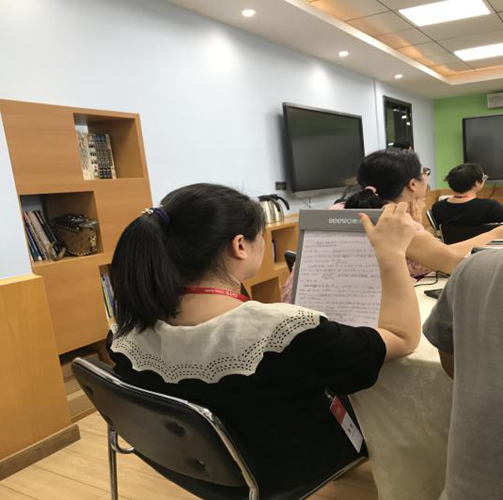 當(dāng)天下午希沃交互智能錄播產(chǎn)品線的相關(guān)代表從產(chǎn)品的硬件與軟件兩方面開展了相關(guān)內(nèi)容的培訓(xùn),培訓(xùn)課程進(jìn)行過程中,老師們認(rèn)真學(xué)習(xí)相關(guān)內(nèi)容,筆記寫滿了整整幾頁紙。通過硬件性能及操作的培訓(xùn),讓老師們相信希沃交互智能錄播能更好地支持常態(tài)化的使用,而非精品錄播一般,只是用于示范課等內(nèi)容展示,同時(shí)配合希沃交互智能平板使用,讓老師的授課更加高效便捷;軟件培訓(xùn)方面,結(jié)合希沃EN5,班級(jí)優(yōu)化大師等軟件的運(yùn)用,為老師們提供課程互動(dòng)新模式新方案。