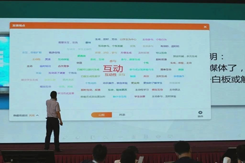 朱京曦博士表示,目前,課堂教學模式從“‘三個一’支持的符號課堂”、到“多媒體支持的認知課堂”、“交互式媒體支持的互動課堂”,再到“智慧教室支持的翻轉課堂”變化發展。分享的過程中,朱京曦博士運用希沃易課堂的課件推送、拍照上傳、觀點等功能,讓在場嘉賓在互動中深刻感受智慧課堂的特征。