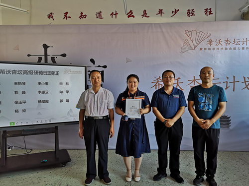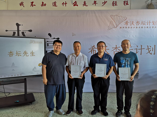 最后由希沃公司教師發(fā)展顧問和希沃銷售經(jīng)理共同為教育局趙局和電教館的付主任,孫老師頒發(fā)了全國(guó)第一批杏壇先生榮譽(yù)證書。