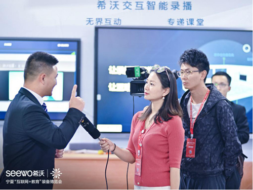 希沃攜三大新品——希沃易課堂、希沃交互智能錄播、希沃云班牌驚艷亮相,憑借創新的功能設計,先進的技術與解決方案,吸引了大批國內外參展人士駐足觀看,獲得各電教館館長、校長、老師的高度關注,并接受了寧夏電視臺的采訪。