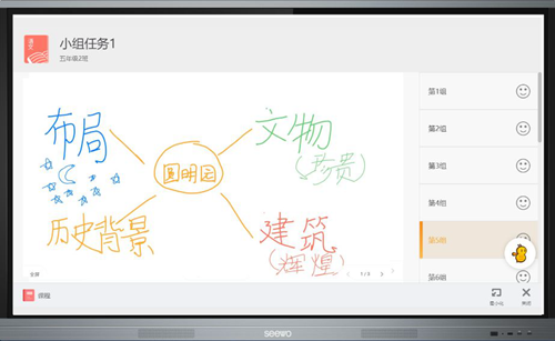 通過(guò)希沃易課堂小組協(xié)作模式,如在《圓明園的毀滅》這堂語(yǔ)文課中,老師的預(yù)設(shè)也許如下圖所示,但學(xué)生討論的結(jié)果顯然更豐富。小組協(xié)作的模式讓老師清晰地看到每一個(gè)組員的協(xié)作操作過(guò)程,并直觀查看組員討論結(jié)果,發(fā)現(xiàn)每一個(gè)學(xué)生身上更多可能和閃光點(diǎn)。