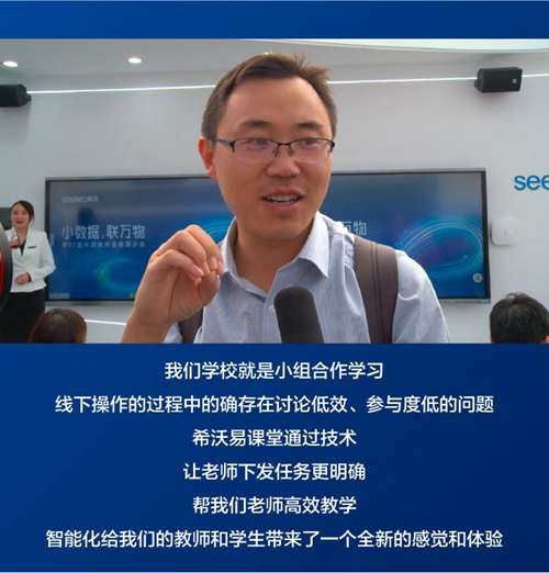 一位老師在體驗(yàn)了希沃易課堂小組合作學(xué)習(xí)任務(wù)后講道:“我們學(xué)校就是小組合作學(xué)習(xí),線下操作的過(guò)程中的確存在討論低效、參與度低的問(wèn)題。這次來(lái)展會(huì),就想體驗(yàn)下小組合作學(xué)習(xí)。希沃易課堂通過(guò)技術(shù),讓老師下發(fā)任務(wù)更明確,幫我們老師高效教學(xué),智能化給我們的教師和學(xué)生帶來(lái)了一個(gè)全新的感覺(jué)和體驗(yàn)。”