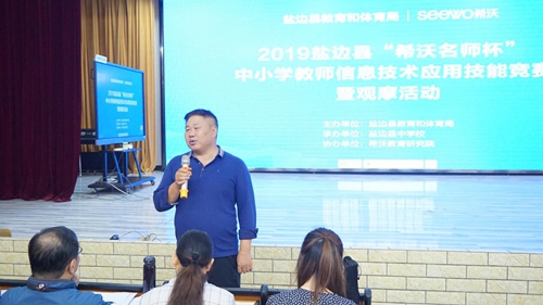 本次競賽活動于11月6日上午在鹽邊階梯教室正式開始,希沃教育研究院陳柯主持本次活動。攀枝花市電化教育(技術(shù)裝備)中心廖主任在賽課活動開始前講話:教育部2018年出臺了《教育信息化2.0行動計(jì)劃》,現(xiàn)在教育信息化正處于從1.0到2.0發(fā)生根本性的變革時期,只有我們主動適應(yīng)教育的信息化、現(xiàn)代化,才能不斷加強(qiáng)提升自我信息和學(xué)科素養(yǎng),才會有我市和鹽邊縣教育和體育的美好明天。
