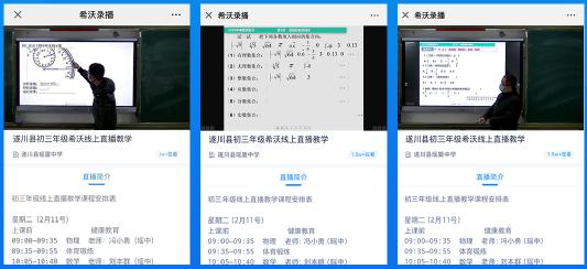 為貫徹落實《江西省各級各類學校2020年春季學期3月1日前不開學》精神,指導和幫助全縣初三學生在寒假及春季學期延期開學期間,利用網絡直播教學平臺,科學合理安排好在家學習與生活,確保教學質量穩中有升,近期,江西省遂川縣充分利用“互聯網+教育”優勢,依托希沃的 “希沃錄播云資源管理平臺”,實行初三年級課程直播,搭建線上教學平臺,免費為全縣初三學生在春季學期延期開學期間提供線上遠程輔導答疑服務,做到防疫期間的宣傳教育及心里輔導。