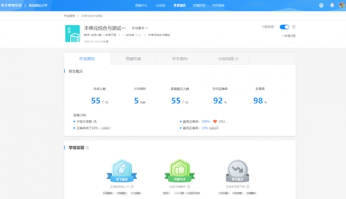 “我們班上有55個學(xué)生,在以往,每次手動批改作業(yè),我都要耗費好多時間。”趙老師說:“可是這一次,使用希沃易課堂的‘自動批改’功能,批改作業(yè)的效率一下子就提高了,20分鐘就可以批改完畢。而且希沃易課堂自動生成的‘作業(yè)報告’,讓我更清楚掌握孩子們在家學(xué)習(xí)情況,我可以把更多時間花在如何幫助孩子們查漏補缺上。”