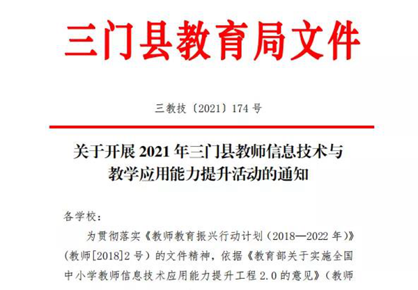 號)的文件精神,為了實現“打造信息化教學創新團隊,引領未來教育方向”的目標,同時結合新時代中小學教師隊伍建設和發展的實際需求,希沃攜手三門縣教育局開展了為期7天的線上訓練營培訓活動,助力三門縣進一步提高中小學教師信息技術應用能力和信息素養。