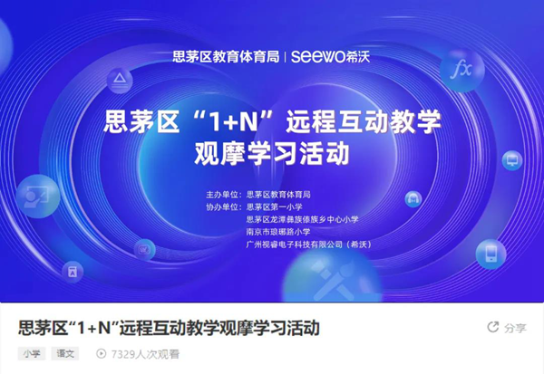 本次觀摩學習活動主要以“希沃公益行-千里共課堂計劃”為背景,設置了建設規劃、互動教學觀摩、總結展望等活動版塊,依托希沃“1+N互動課堂”信息教育技術系統,讓來自思茅區第一小學的師生與龍潭小學的師生能通過網絡“共聚一堂”完成三堂遠程同步觀摩課。同時,此次活動還邀請到了南京市瑯琊路小學一同交流學習,真正推進教育幫扶的進度。為確保“1+N互動課堂”推進的統籌性、高效性,在前期已對學校教研教務、電教老師等進行了統一性、系統性部署與業務培訓。