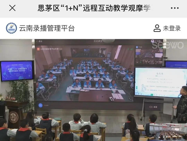 2021年11月16日,一場“城鄉互助,跨省聯動”的遠程互動教學應用試點觀摩學習活動在思茅區第一小學順利開展。活動以思茅區第一小學為主會場,思茅區龍潭中心小學及南京市瑯琊路小學作為分會場,并面向整個普洱市思茅區、丘北縣、蘭州市城關區等其它區開展直播,線上累計觀看達7300多人次。