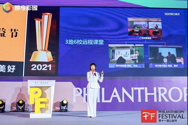 希沃教育研究院院長(zhǎng)胡婷玉出席了公益節(jié),并以“遠(yuǎn)程課堂,為鄉(xiāng)村教育創(chuàng)造更多可能”為主題發(fā)表了演講。她提到,希沃公益行走過(guò)6個(gè)年頭,一直在不斷改變和升級(jí),一步步從改善鄉(xiāng)村教育環(huán)境走向硬件提升和軟性建設(shè)一齊發(fā)力,到2021成長(zhǎng)為捐贈(zèng)設(shè)備、教師培訓(xùn)、組團(tuán)幫扶遠(yuǎn)程課堂建設(shè)三線并行……希沃,一直在為教育均衡而努力著。