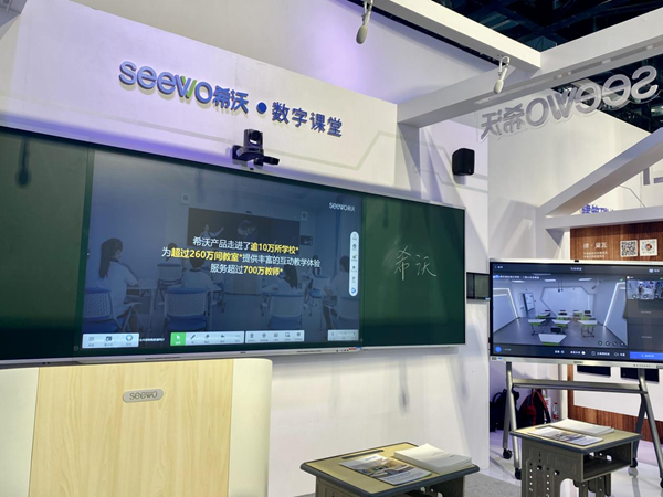 走進希沃展區,看似布局簡易的智慧教室內,教學設備齊全、功能先進,參展商們紛紛上手體驗,親身感受數字課堂。