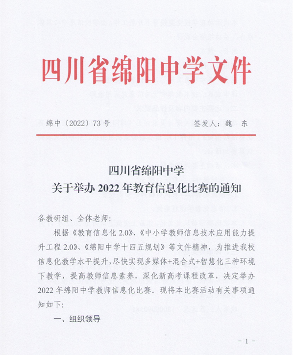 為落實《教育現代化2035》、《教育信息化2.0》、《中小學教師信息技術應用能力提升工程2.0》、《綿陽中學十四五規劃》等文件精神,有序推進綿陽中學教師信息化教學水平提升,提高教師信息素養,深化新高考課程改革,適應多媒體+混合式+智慧化三種環境下教學,四川省綿陽中學舉辦了為期一個月的教育信息化比賽。