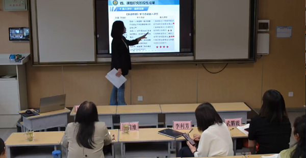 孝義市振興東街郭世玲校長根據學校研究成果,做了關于《著眼未來,立足課堂。實施教學評一體化,推動學校品質提升》的分享,指出教學評一體化的課堂首先要確定學習目標、評價先行,用結構化的思維進行任務分解和活動的設計,并在重難點部分嵌入評價,學生在這種學習支架內遷移運用形成可視化的成果。