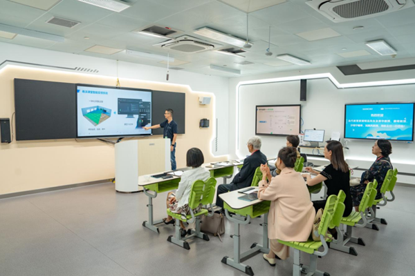 “校園和講壇是向教育家學(xué)習(xí)、弘揚(yáng)教育家精神的主戰(zhàn)場(chǎng)、主渠道。”在希沃未來教室,希沃軟件平臺(tái)總監(jiān)劉霄翔向顧明遠(yuǎn)先生一行介紹了希沃的最新產(chǎn)品,并提到:“課堂一直是教學(xué)主陣地。如何幫助教師上好每一堂課,及時(shí)有效地給予一堂課反饋是希沃助力數(shù)字化教學(xué)的關(guān)注點(diǎn)。”這與顧明遠(yuǎn)先生提出的“教育的本質(zhì)是培養(yǎng)思維,培養(yǎng)思維的最好場(chǎng)所是課堂。”這一觀點(diǎn)不謀而合。