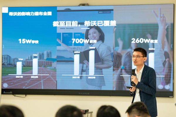 希沃一直專注于用數(shù)字化賦能高質(zhì)量教師隊(duì)伍建設(shè)。通過打造“專家參與、名師共創(chuàng)”的希沃學(xué)苑學(xué)習(xí)平臺(tái),以及融合數(shù)字化培訓(xùn)體系的希沃杏壇計(jì)劃,助力教師數(shù)字素養(yǎng)和教育教學(xué)能力的提升。截至目前,希沃產(chǎn)品已覆蓋全國(guó)260萬(wàn)間教室。截至2023年6月30日,希沃已服務(wù)教師用戶超700萬(wàn)人,累計(jì)上線EN5課件總數(shù)達(dá)到6億份。此外,希沃還成立了廣東省杏壇智慧教育創(chuàng)新研究院,開展對(duì)教育行業(yè)的各項(xiàng)研究,深化對(duì)教育實(shí)踐的助力。