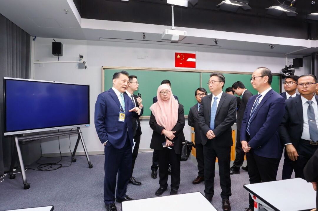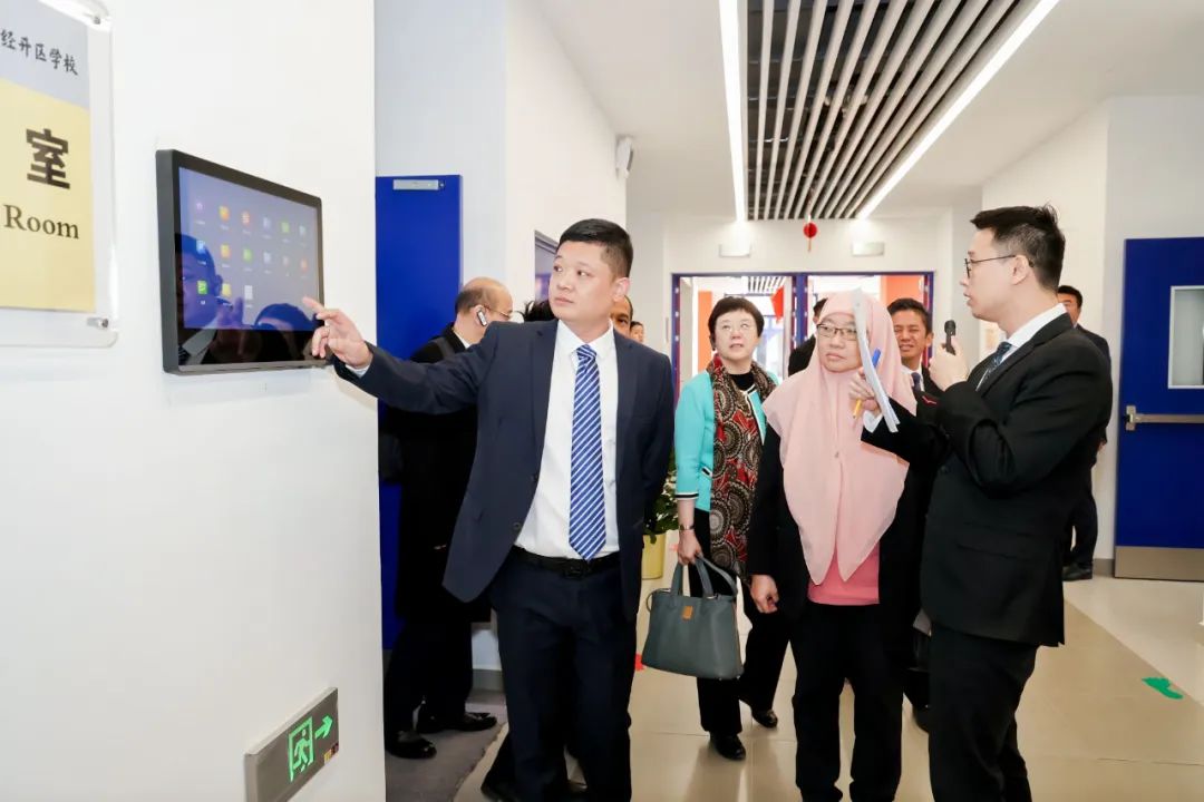 當(dāng)天下午,東盟各國(guó)教育官員一行首先參訪北京市第二中學(xué)經(jīng)開(kāi)區(qū)學(xué)校,現(xiàn)場(chǎng)了解數(shù)字化在具體教學(xué)實(shí)踐中的應(yīng)用。從智能監(jiān)控中心、遠(yuǎn)程教室、化學(xué)實(shí)驗(yàn)室等場(chǎng)景,到安裝了希沃交互智能平板、電子班牌、電子畫(huà)框等硬件的智慧教室,北京市第二中學(xué)經(jīng)開(kāi)區(qū)學(xué)校已經(jīng)把數(shù)字技術(shù)成功在運(yùn)用到了老師教學(xué)和學(xué)校運(yùn)營(yíng)中,使東盟各國(guó)教育官員對(duì)中國(guó)數(shù)字化、信息化的教育管理模式有了深切感受。