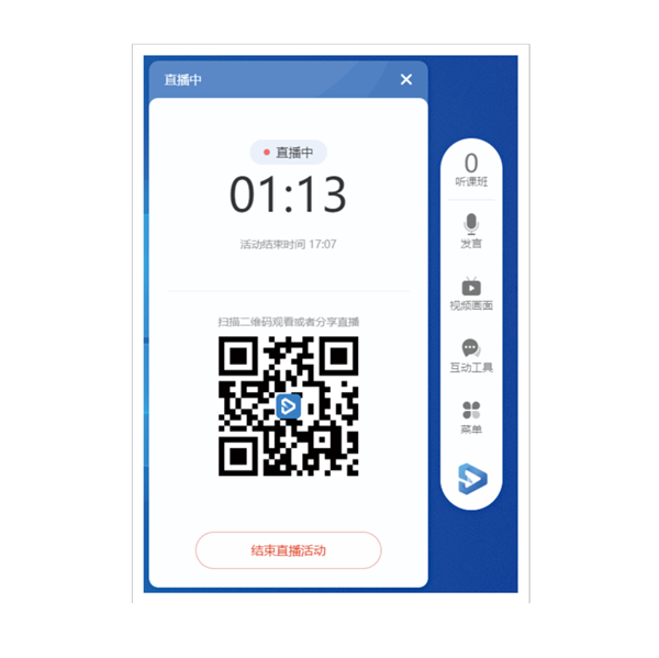 為了幫助老師輕松開啟線上教學(xué),讓老師更專心投入課堂教學(xué),在高質(zhì)量班班通方案的支持下,學(xué)校老師可即時(shí)創(chuàng)建直播間,生成課程直播二維碼,其他老師或觀眾只需通過手機(jī)、電腦掃碼便能進(jìn)入觀看課堂,隨時(shí)隨地開始學(xué)習(xí)。