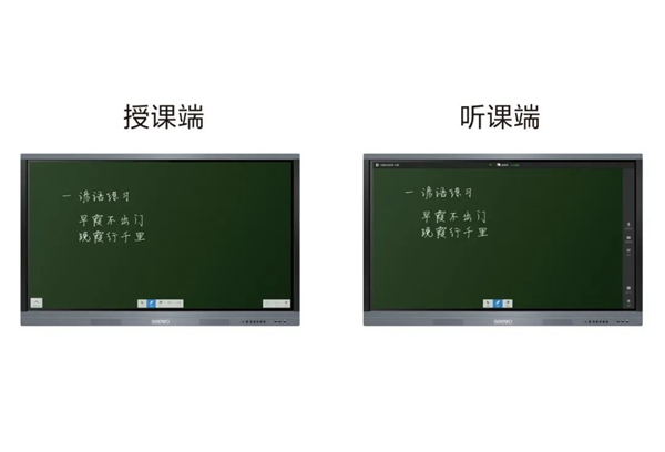 為助力提升專遞課堂質(zhì)量,促進(jìn)學(xué)生有效學(xué)習(xí),高質(zhì)量班班通解決方案支持通過希沃遠(yuǎn)程互動(dòng)助手,實(shí)現(xiàn)高效有趣的課堂互動(dòng)。在課堂教學(xué)中,老師可以借助希沃遠(yuǎn)程互動(dòng)助手,輕松實(shí)現(xiàn)異地板書同步、多課堂競(jìng)賽、遠(yuǎn)程拍照上傳分享學(xué)習(xí)成果等,讓兩地學(xué)生仿若置身同一教室共同學(xué)習(xí),營造了良好的課堂氛圍,讓學(xué)生成為課堂的主體,主動(dòng)積極參與課堂互動(dòng),從而提高課堂教學(xué)實(shí)效。