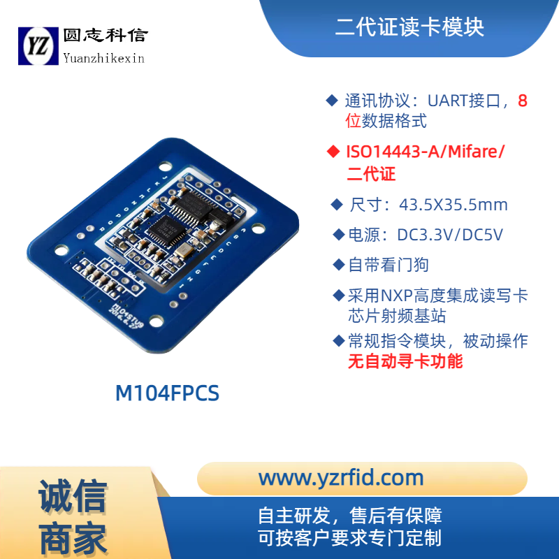 M1讀卡模塊型號(hào)間主要區(qū)別: M104A IIC接口 M104B UART接口