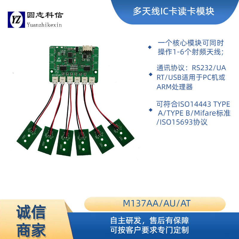 產品詳細介紹M137 多天線讀卡模塊 >>產品描述 采用NXP高度集成讀寫卡芯片射頻基站 符合ISO14443 TYPE A/Mifare標準 支持Mifare One S50,S70, FM11RF08及其兼容卡片 最多可同時支持5個天線,在某些特定場合下可大大降低用戶成本 用戶不必關心射頻基站的復雜控制方法,只需通過簡單的命令集可以實現對卡的完全操作 核心模塊超小尺寸,尺寸50X28mm 通訊協議:RS232/UART/USB適用于PC機或ARM處理器 與PC機連接時可以通過發送底層指令進行相應操作,也可以通過上位機軟件調用圓志DLL動態庫進行相應操作 配備完善的開發例程,更適合客戶在短時間內完成相應開開發任務 自帶看門狗 基于模塊的擴展功能很強可根據用戶要求修改軟件定制個性化模塊,不用改變線路 廣泛應用于非接觸智能水、電、氣三表、交通一卡通讀寫器,充電樁,桌面發卡器,門禁考勤讀寫卡器,汽車電子感應鎖配套,辦公商場/洗浴中心儲物箱的安全控制,各種防偽系統及生產過程控制