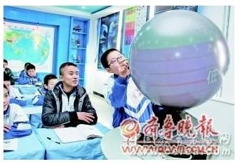 10日,威海市義務教育學段首個數字化地理教室,在文登南海實驗學校正式建成并投入使用。該數字化地理教室投資40多萬元,由數字星球系統和語音地圖兩大 部分組成,其中數字星球系統是目前國內唯一實現三維立體動態展示的單體數字化教學儀器。圖為11日該校初一二班學生在數字化地理教室上課。